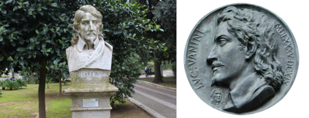 L: Giulio Cesare Vanini's bust by Eugenio Maccagnani, 1886.